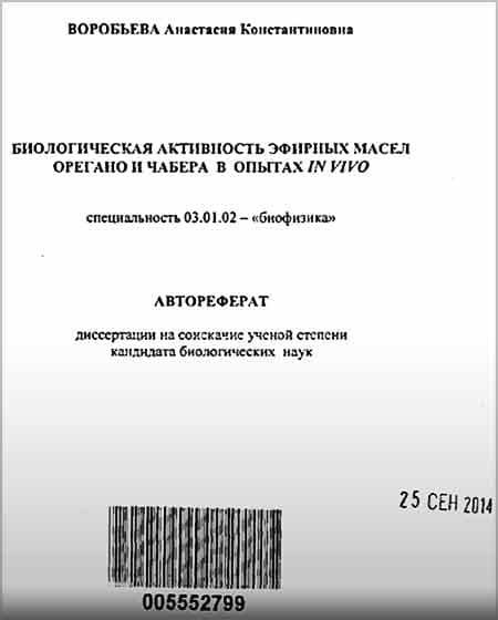 В 2014 году ученой Воробьевой А.К. была защищена кандидатская диссертация на тему биологической активности эфирных масел орегано (душицы) и чабера. Она доказала, что при ежедневном приеме душицы в малых дозах увеличивается срок жизни млекопитающих на 30 — 50%, так как трава сдерживает рост патогенной микрофлоры.